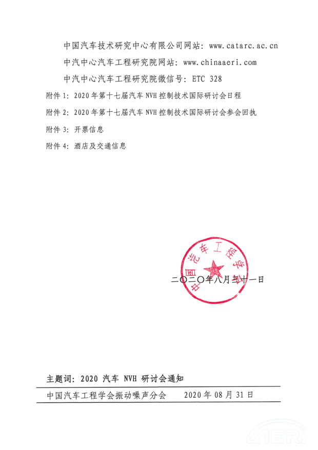 關于舉辦“2020年第十七屆汽車NVH 控制技術國際研討會” 的通知