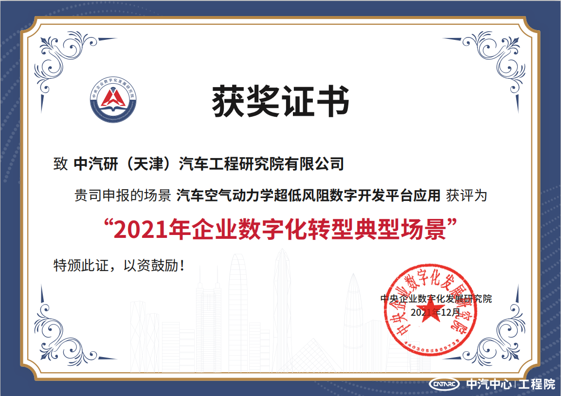 低風阻數字化開發技術已取得階段性成果,該應用場景獲“2021年企業數字化轉型典型場景”,目前已完成空氣動力學數值風洞建模與仿真試驗對標,仿真誤差1%~3%,搭建空氣動力學數據庫系統,目前正在向行業征集合作伙伴,計劃2023年向企業推廣應用。