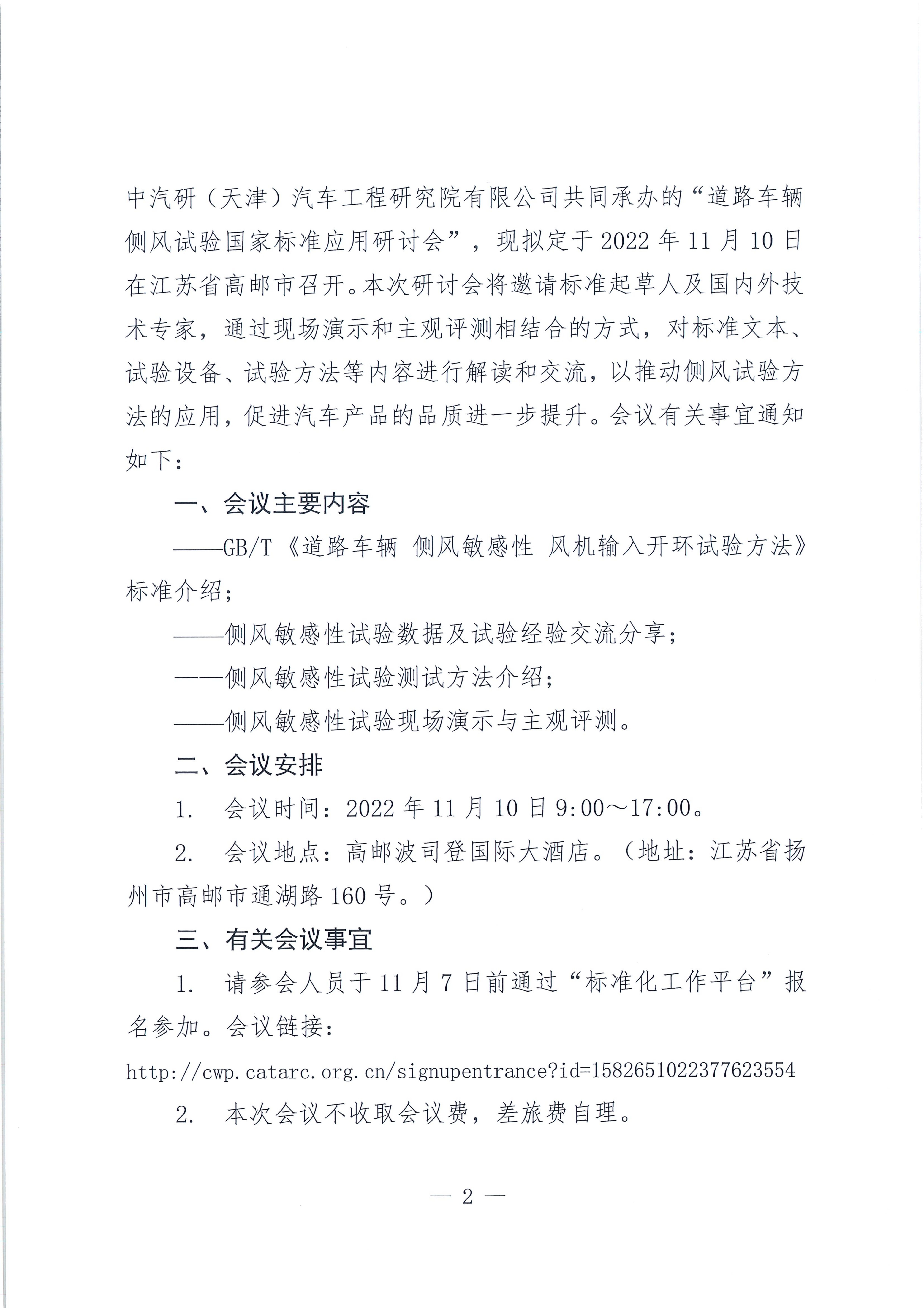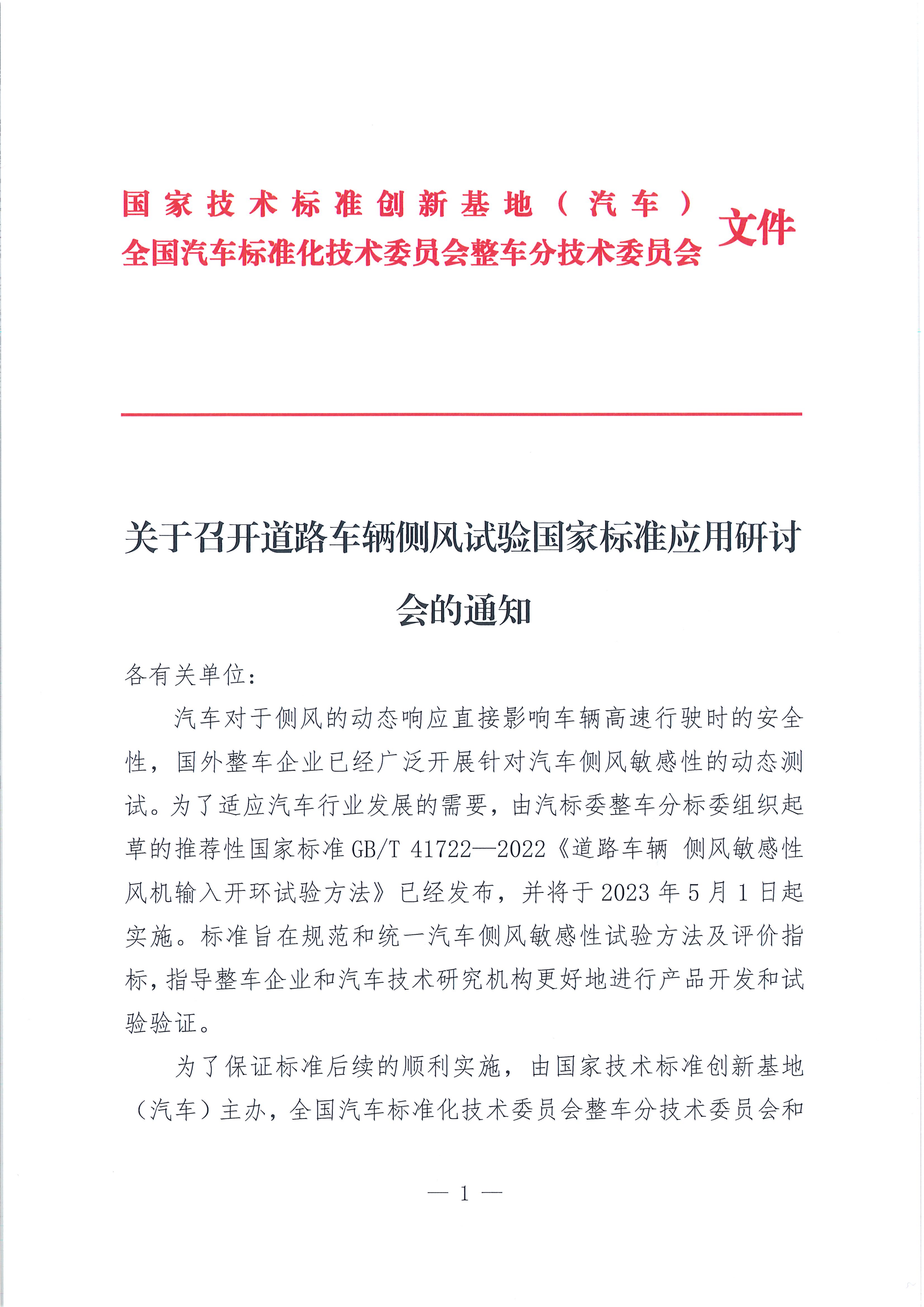 關于召開道路車輛側風試驗國家標準應用研討會的通知