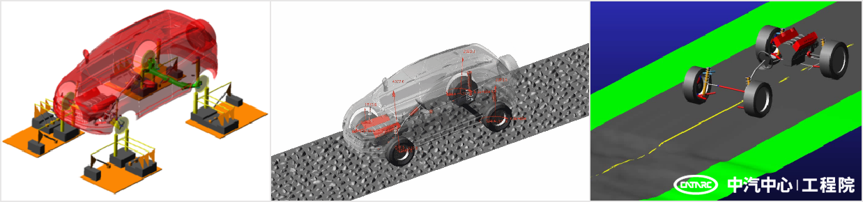 (a)載荷分解                 (b)虛擬試驗場             (c)底盤操穩與平順性