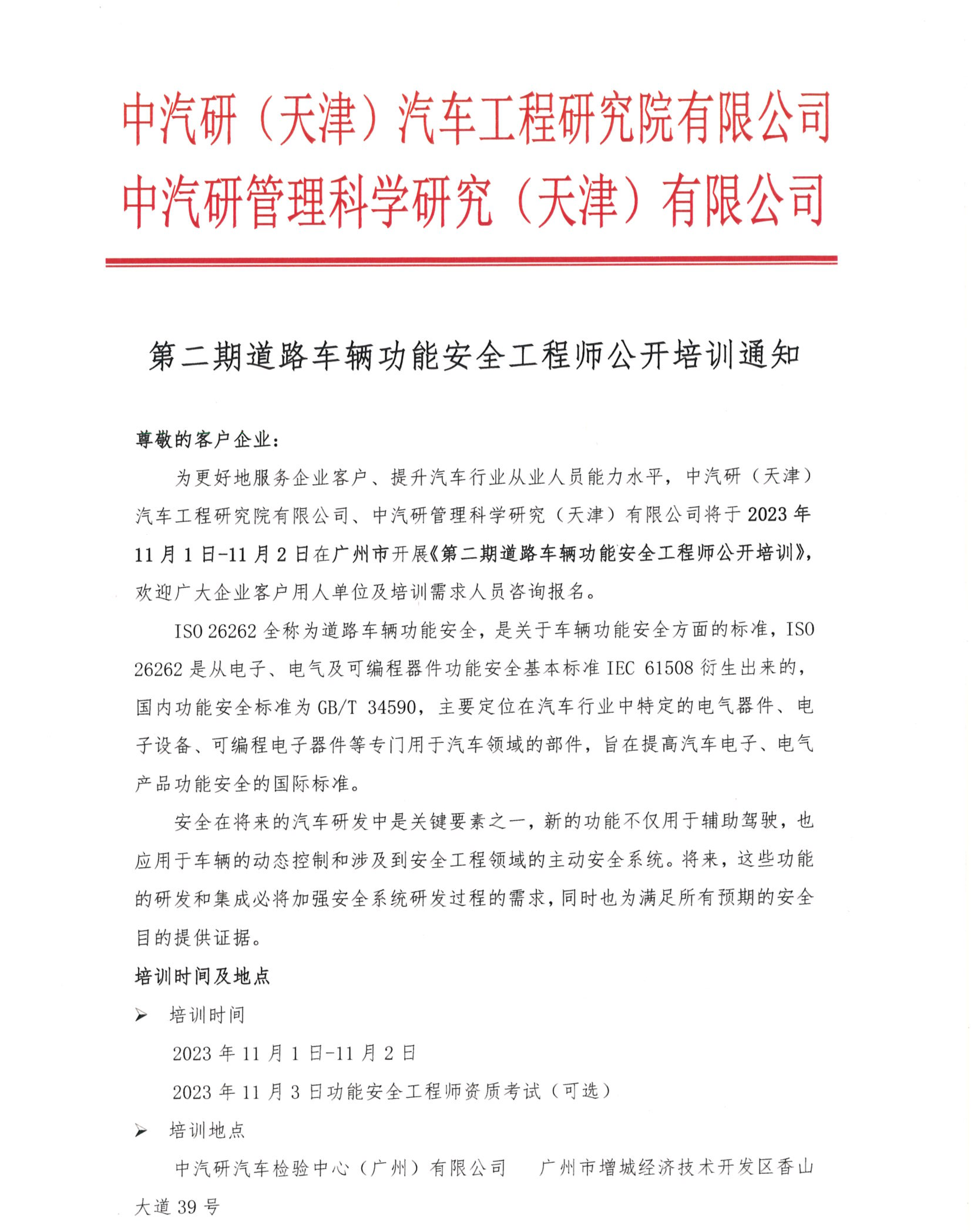 公開培訓(xùn)-ISO26262汽車功能安全工程師培訓(xùn)通知