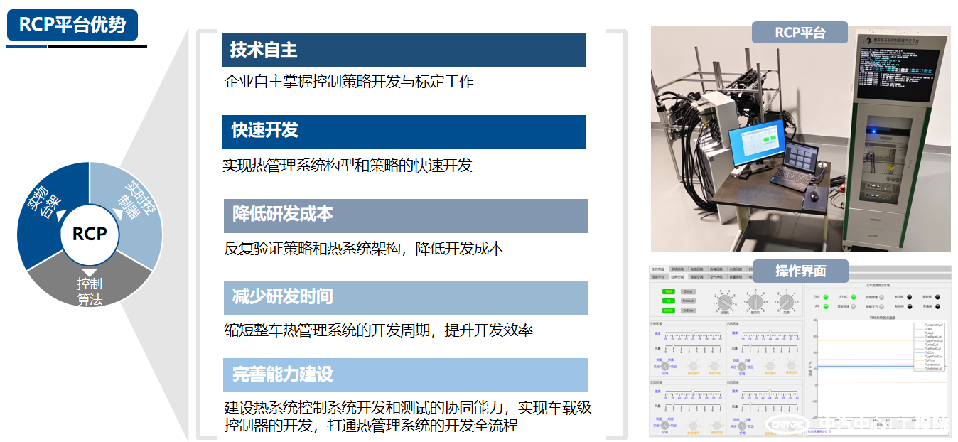 中汽中心工程院風洞中心憑借多年整車熱管理系統的控制策略開發經驗,建立了平臺化整車熱系統控制策略開發能力,為整車及熱系統零部件企業提供整車熱系統的控制策略仿真開發、控制策略快速控制原型及控制器硬件在環測試驗證等,通過平臺化的開發方式,助力企業快速高效實現熱系統控制策略的自主開發。