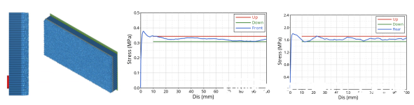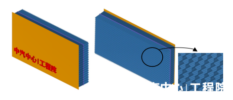 正面FWDB有限元壁障整體尺寸為2000×1000×300mm,采用前后兩段不同力學性能的蜂窩鋁結構設計而成,壁障整體固定在剛性墻上承受車輛35公里/小時的撞擊。依托完善的數字化壁障開發關鍵技術體系,工程院安全開發團隊通過有限元模型等效、蜂窩鋁失效卡片開發、壁障力學性能標定與整車分析迭代,開發出了高精度FWDB數字壁障模型,該模型可滿足Euro-NCAP技術公告042正面全寬可變形壁障設計要求(Version 1.0 July 2024)。