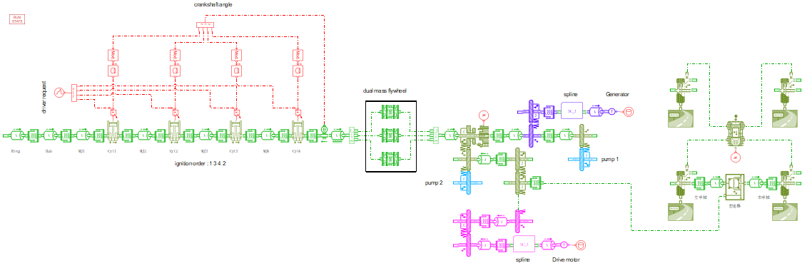 包含傳動(dòng)系統(tǒng)動(dòng)力學(xué)模型,包含發(fā)動(dòng)機(jī)、電驅(qū)、傳統(tǒng)變速箱、混動(dòng)變速箱、整車傳動(dòng)鏈等關(guān)鍵系統(tǒng)模型。
