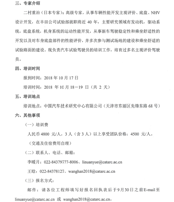關于懸架K&C數據在車輛調校中的運用培訓的邀請函
