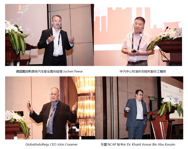 會議邀請德國寶馬汽車安全部副總監Prof. Klaus Kompass做了《自動駕駛的安全考慮》的主題報告,中汽中心標準所劉桂彬副總工程師介紹了中國電動汽車標準的現狀與未來的發展、中汽中心C-NCAP管理中心李維菁部長介紹了CNCAP的最新變化與未來趨勢,德國戴姆勒奔馳Jochen Feese分享了他們對中國交通安全的研究以及戴姆勒奔馳汽車公司的安全技術,美國福特Saeed Barbat博士分享了福特的動力電池建模和測試方法,國軒電池林志宏院長分享了動力電池的開發與安全性,德國聯邦交通研究所主任Prof. Andre Seeck分享了ENCAP關于主動安全、被動安全、行人保護的現狀以及ENCAP的未來規劃、德國Britax全球技術總監Farid Bend jellal介紹了ENCAP關于兒童保護的要求與提高中國兒童道路安全的思考、GlobalAutoRegs的John Creamer分享了美國NCAP的現狀與未來以及聯合國WP29關于自動駕駛安全性的討論現狀、東盟NCAP秘書長Dr. Khairil Anwar Bin Abu Kassim介紹了東盟NCAP的現狀與未來規劃以及東盟國家的摩托車安全問題。會議共邀請國內外汽車安全行業的三十余位專家分享了最新的汽車安全技術成果。