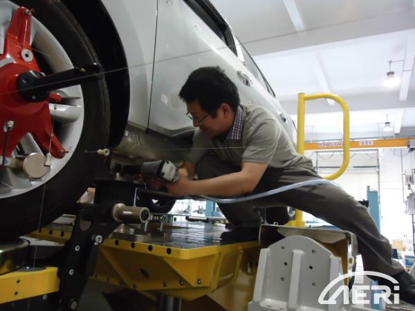 虛心竹有低頭葉,傲骨梅無仰面花。2012年,李飛承擔了懸架KC實驗室建設這一重大項目。由于非本專業,諸如水、電、地基和壓縮空氣等基礎設施的搭建問題卻難住了這位工學博士。他沒有退縮,充分利用業余時間進行了跨專業學習,主動請教設計院的專家,最終匯總成了切實可行的設計方案,確保了實驗室的順利完工。如今,KC實驗室已經運行8年多了,他帶領的KC團隊已經積累了上百條的使用和測試經驗,為工程院的發展做出了巨大貢獻。
