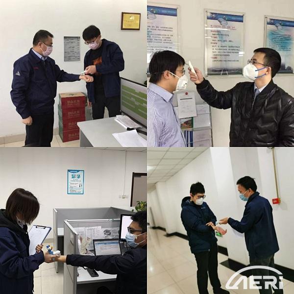 按照工程院防疫工作細則要求,突擊隊測溫組成員每天早晨和中午各一次,逐一測量員工體溫并進行登記。