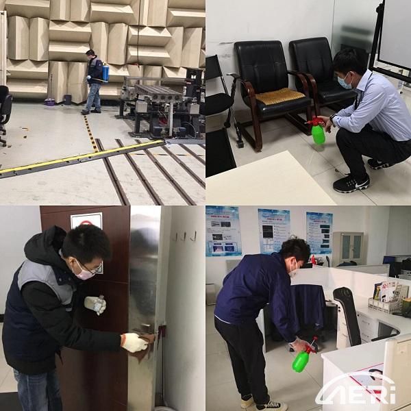 在辦公區(qū)、試驗室等重點區(qū)域,突擊隊消毒組成員嚴格按照消毒要求,認真做好每天一次的消毒工作,做到殺毒不留死角。