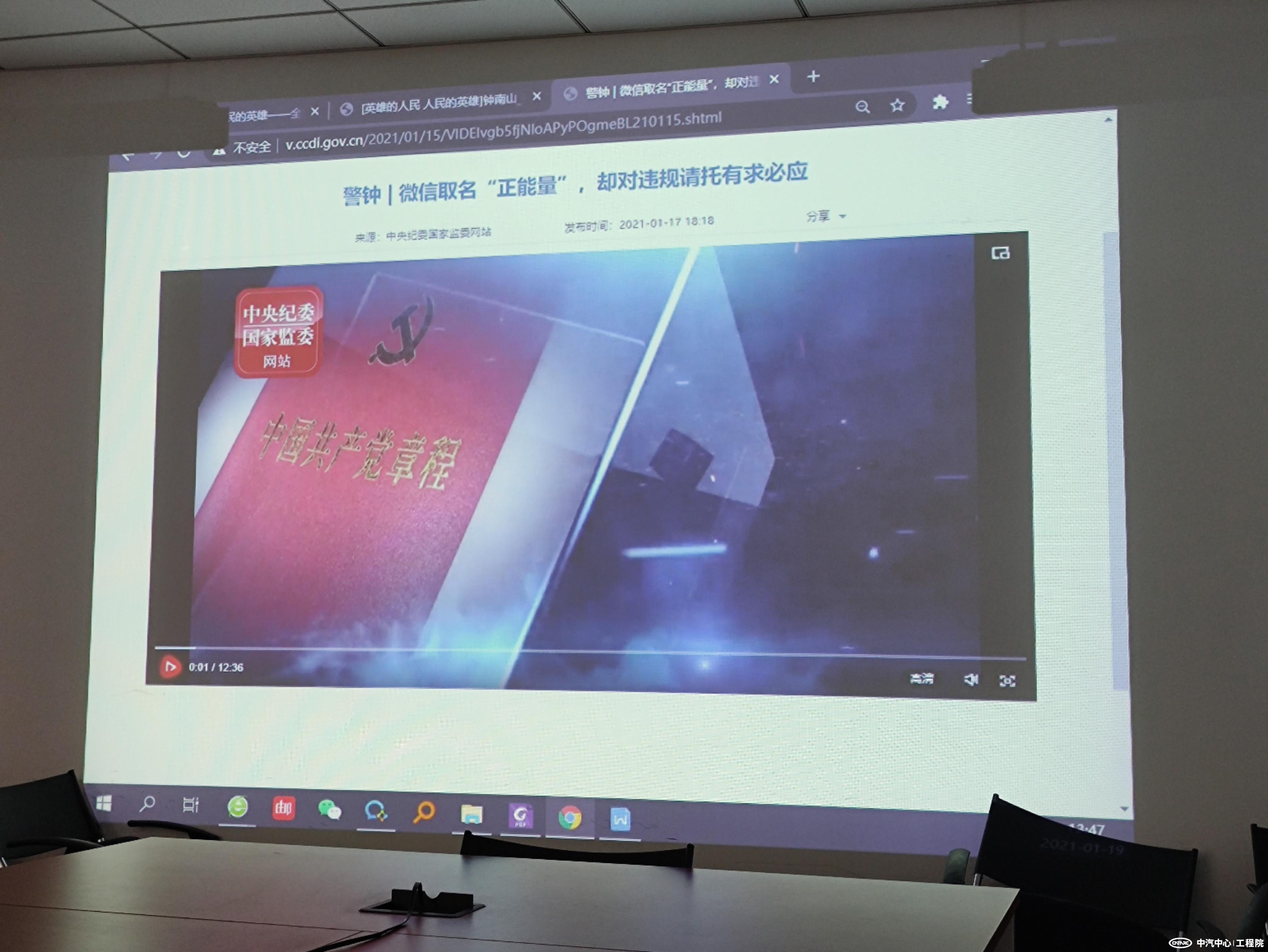首先,全體參會人員共同觀看了中紀委監(jiān)委視頻材料《警鐘-微信取名“正能量”,卻對違規(guī)請托有求必應(yīng)》。隨后,支部書記朱仲文結(jié)合視頻內(nèi)容、《關(guān)于緊盯2021年元旦、春節(jié)兩節(jié)期間“四風”問題的通知》以及《元旦、春節(jié)期間"四風"問題監(jiān)督舉報曝光專區(qū)通報9起典型案例》兩個文件,要求全體人員廉潔過節(jié)。朱仲文提醒,無論身處哪種級別,都要嚴于律己,做好自查自糾,工程院紀委將嚴肅處分頂風違紀人員。